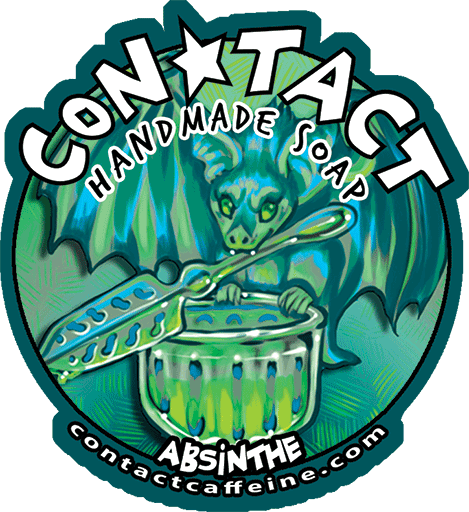 Con*Tact's soap is a very mild vegetable glycerin combined with shea for moisturizing. The lather is incredibly thick and is great when used with a bath scrubby pouf for extra suds. "Frosting" may occur as the caffeine crystallizes on the surface of the soap, and will rinse off with the next use. Our soaps are all available without caffeine as well! Simply use the dropdown menu below to select the option you'd like.Con*Tact Caffeine Soap is for adults only, and is not safe for children. Please choose our "decaf" option if you're giving our soap to anyone under 18.