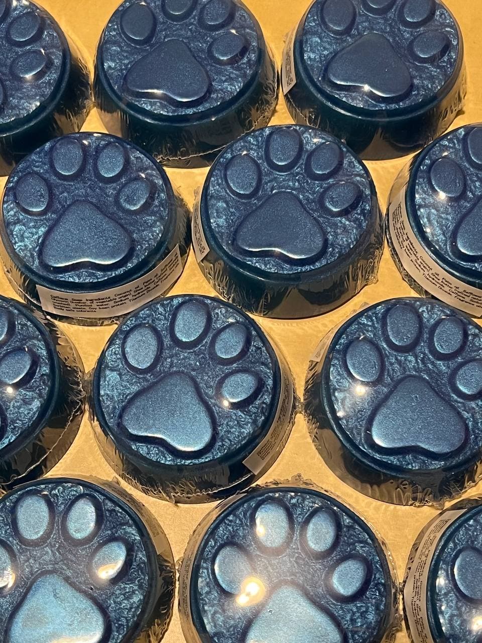 We still have plenty of the good smelly sauce that makes our soaps so special, but we've run out of labels for some scents. By offering these custom dozen lots, we're able to continue manufacturing soap and keep our fans content, as long as they're okay with plain wrapped bars. The soap will otherwise be as you remember it: the same color bar as we previously made it, with the same color shine on top.
