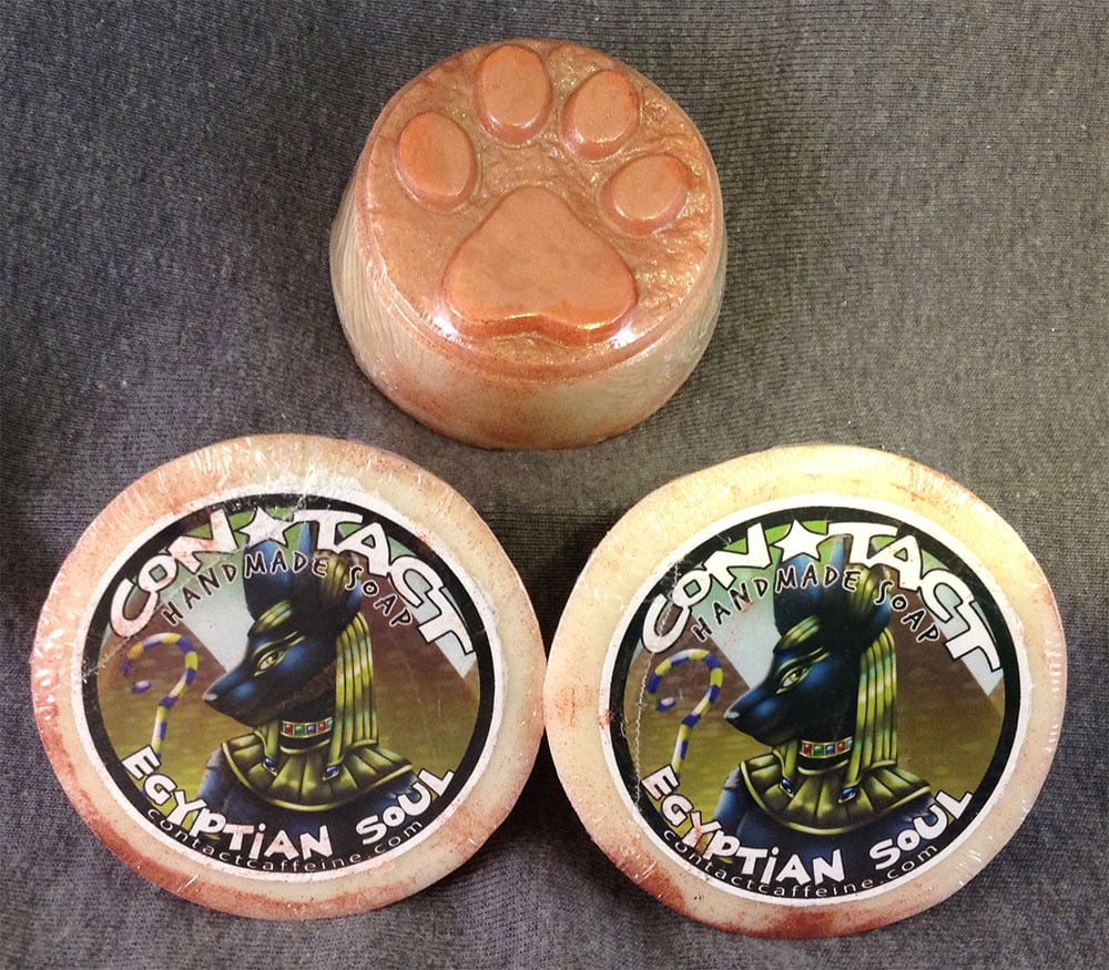 Con*Tact's soap is a very mild vegetable glycerin combined with shea for moisturizing. The lather is incredibly thick and is great when used with a bath scrubby pouf for extra suds. "Frosting" may occur as the caffeine crystallizes on the surface of the soap, and will rinse off with the next use. Our soaps are all available without caffeine as well! Simply use the dropdown menu below to select the option you'd like.Con*Tact Caffeine Soap is for adults only, and is not safe for children. Please choose our "decaf" option if you're giving our soap to anyone under 18.